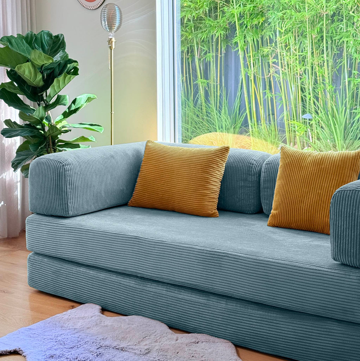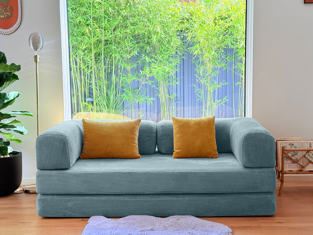The plush corduroy fabric feels warm, cosy, and inviting—perfect for relaxing, reading, or movie nights.