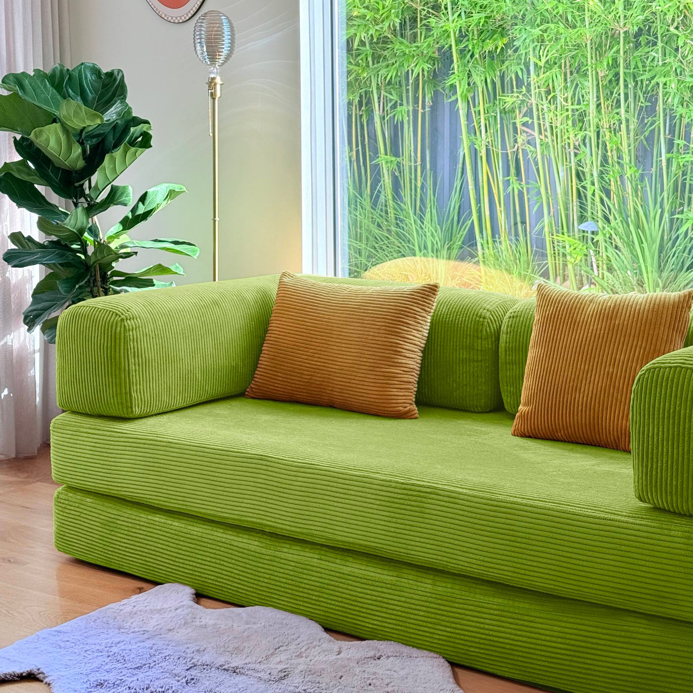 The plush corduroy fabric feels warm, cosy, and inviting—perfect for relaxing, reading, or movie nights.