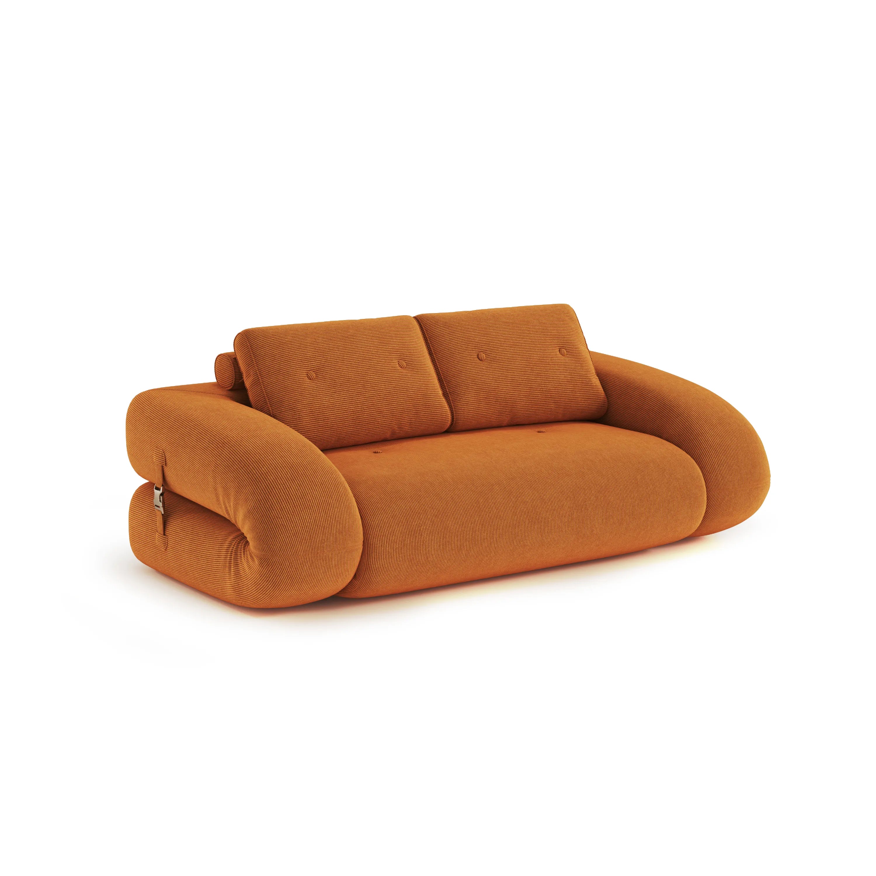 Flippo Sofa Bed in Orange color – sculptural design with plush corduroy, convertible to bed, modern furniture style