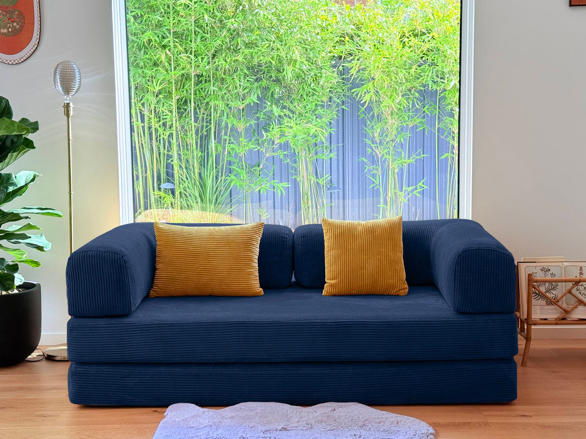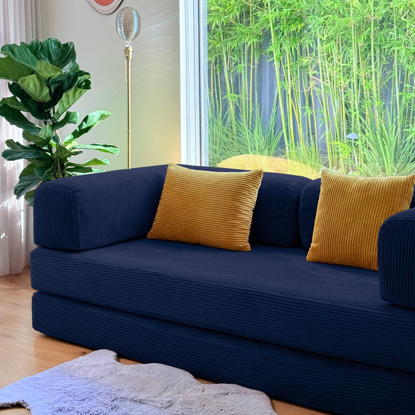 The plush corduroy fabric feels warm, cosy, and inviting—perfect for relaxing, reading, or movie nights.