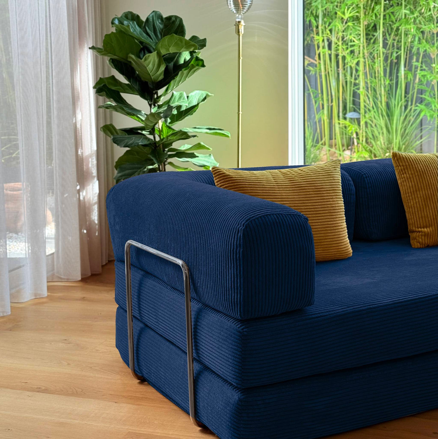 Easily transforms between a sofa, lounge seat, and bed to suit any moment and any space.